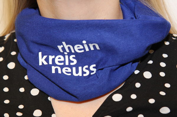Vielseitig und praktisch. Das nahtlose, weiche Multifunktionstuch kann als Kopftuch, Halstuch, Sturmhaube, Saharatuch, Piratentuch, Ohrwärmer, Maske und Haarband getragen werden. Das Tuch mit weißem Rhein-Kreis Neuss Logo ist aus Polyester und kann perfekt im Sommer wie auch im Winter verwendet werden.